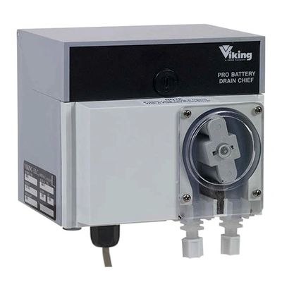 DrainMaster System An automatic injection system that completely takes the worry and guesswork out of one of the biggest headaches in any commercial kitchen: Grease Waste. The system uses a simple, timed metering pump to inject the exact right daily dosage into the waste lines and grease trap, at the right time of day to provide maximum effectiveness. There is no water supply required, and the entire unit runs on 110-volt AC power, or two 6-volt batteries.